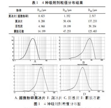 蒙藥黑冰片( har gabur) 為豬科動物野豬 Sus scrofa L. 的干燥糞便,經(jīng)密封煅成炭用,有消食、平 息“希日”、殺“粘”、破痞之功效,用于寒“希日”病, 消化不良,黃疸,“希日”痞,“希日”疫、“粘”疫,胃 “希日”癥,“粘”痧等病癥。活性炭具有較好的 吸附作用,黑冰片與活性炭外表很相似,但是黑冰片 在作為炭狀物的吸附性能方面卻很少有相關(guān)研究, 因此本文對黑冰片吸附性能開展了一系列研究,比 較了不同批次,不同粒徑黑冰片的吸附性能,并與活性炭、蒙脫石進(jìn)行比較,為探索其治療作用機(jī)理以及 新制劑、新功效的開發(fā)提供實(shí)驗(yàn)數(shù)據(jù)支持。