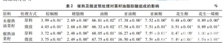 2. 1 催熟及微波預處理對菜籽油理化性質及脂肪 酸組成的影響