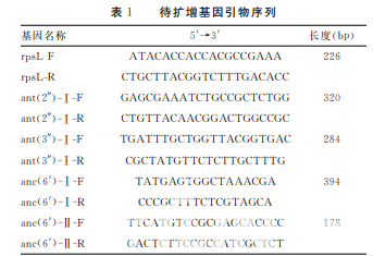 采用 PCR檢測4種氨基糖苷類修飾酶基 因ant(2″)-Ⅰ、ant(3″)-Ⅰ、anc(6′)-Ⅰ和anc(6′)-Ⅱ。